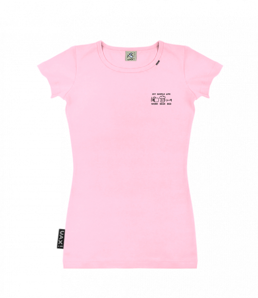 We make sustainable UAX clothing! - hand sewn in the Czech Republic uaxWomen uaxAll productsT-shirtsSKRATDA T-SHIRTSdesign 1211 - MY SIMPLE LIFE WORK BEER BEDBABY PINK