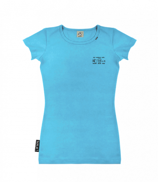 Dámské tričko s potiskem SKRATDA UAX! for woman with design 1211 MY SIMPLE LIFE WORK BEER BED in color BLUE ATOLL