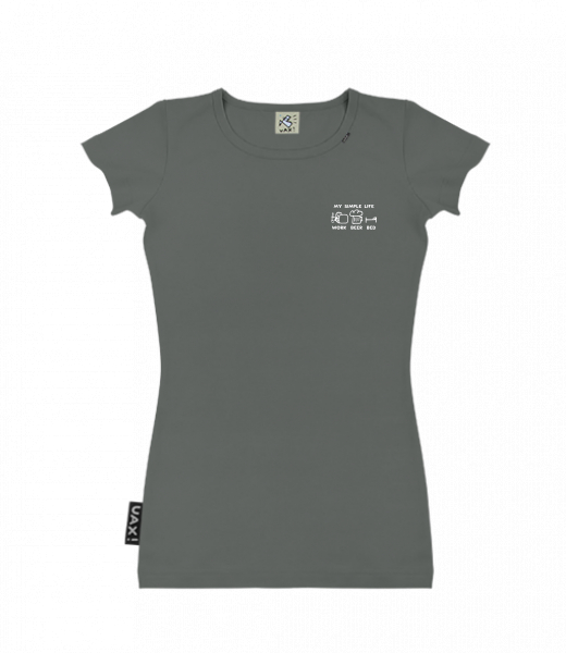 We make sustainable UAX clothing! - hand sewn in the Czech Republic uaxWomen uaxAll productsT-shirtsSKRATDA T-SHIRTSdesign 1211 - MY SIMPLE LIFE WORK BEER BEDDARK GRAY