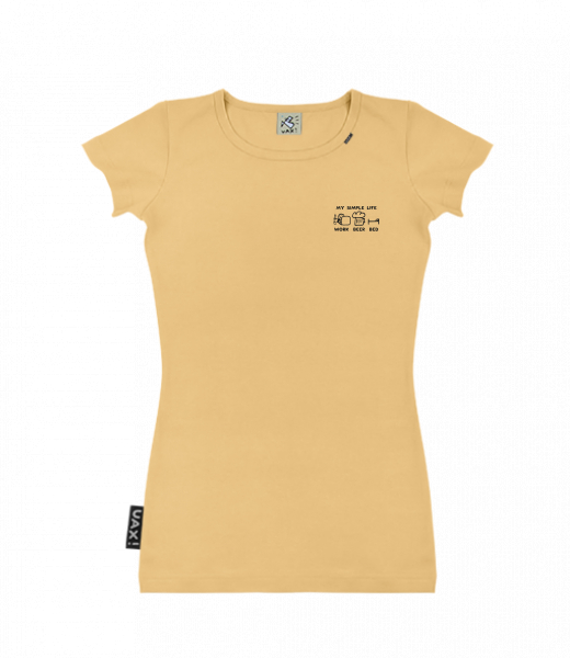 Dámské tričko s potiskem SKRATDA UAX! for woman with design 1211 MY SIMPLE LIFE WORK BEER BED in color MUSTARD