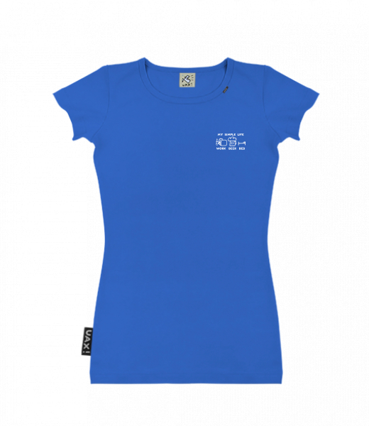 Dámské tričko s potiskem SKRATDA UAX! for woman with design 1211 MY SIMPLE LIFE WORK BEER BED in color ROYAL BLUE