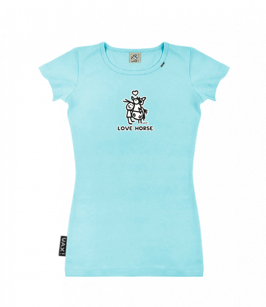 Dámské tričko s potiskem SKRATDA UAX! for woman with design 1219 LOVE HORSE in color PASTEL BLUE