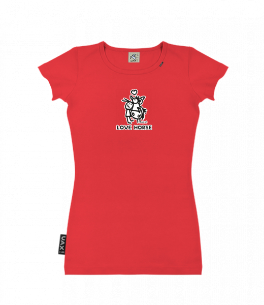 Dámské tričko s potiskem SKRATDA UAX! for woman with design 1219 LOVE HORSE in color RED