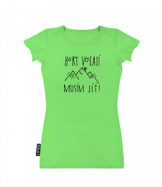 Dámské tričko s potiskem SKRATDA UAX! for woman with design 1233 HORY VOLAJÍ MUSÍM JÍT in color APPLE