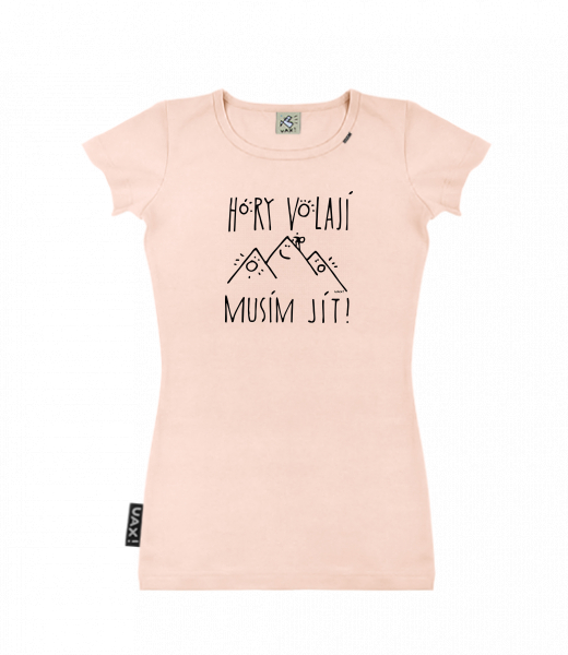 Dámské tričko s potiskem SKRATDA UAX! for woman with design 1233 HORY VOLAJÍ MUSÍM JÍT in color CAPPUCINO
