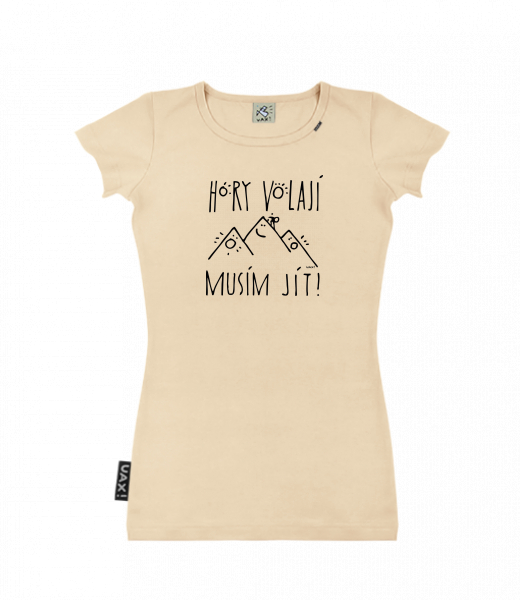 Dámské tričko s potiskem SKRATDA UAX! for woman with design 1233 HORY VOLAJÍ MUSÍM JÍT in color CARAMEL
