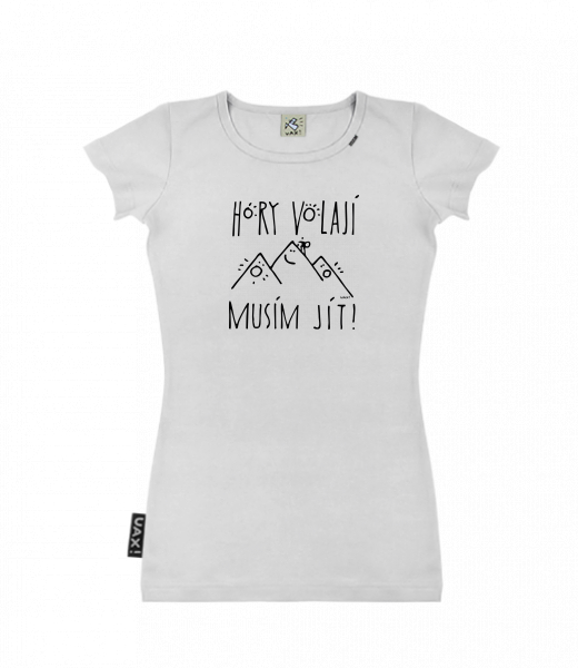 Dámské tričko s potiskem SKRATDA UAX! for woman with design 1233 HORY VOLAJÍ MUSÍM JÍT in color CEMENT