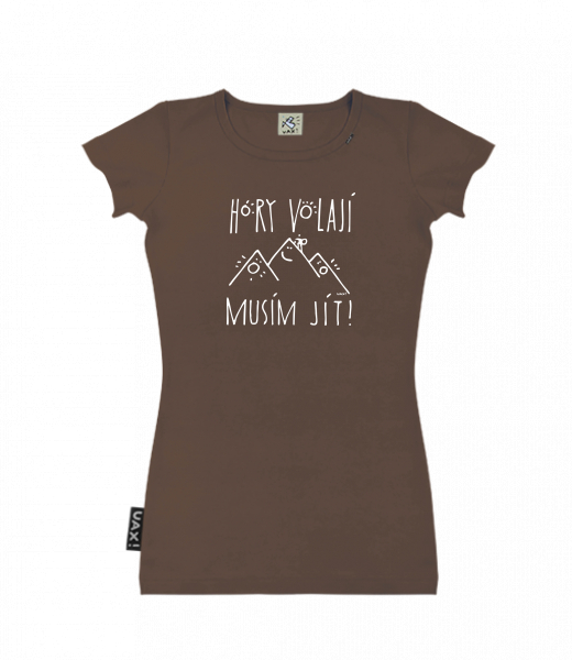 Dámské tričko s potiskem SKRATDA UAX! for woman with design 1233 HORY VOLAJÍ MUSÍM JÍT in color CHESTNUT