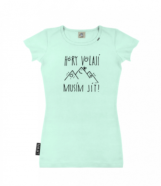 Dámské tričko s potiskem SKRATDA UAX! for woman with design 1233 HORY VOLAJÍ MUSÍM JÍT in color MINT