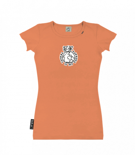 We make sustainable UAX clothing! - hand sewn in the Czech Republic uaxWomen uaxAll productsT-shirtsSKRATDA T-SHIRTSdesign 1240 - TRAVEL IS MY THERAPYMANDARIAN ORANGE