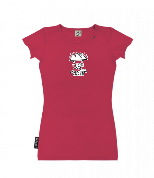 Dámské tričko s potiskem SKRATDA UAX! for woman with design 1264 LÁSKA HORY PŘENÁŠÍ in color CHILLY PEPPER RED