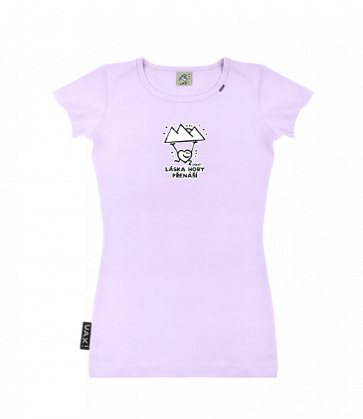 Dámské tričko s potiskem SKRATDA UAX! for woman with design 1264 LÁSKA HORY PŘENÁŠÍ in color LAVENDER