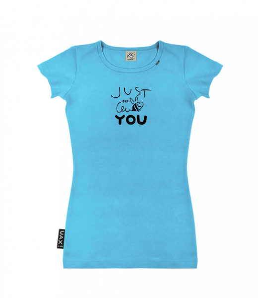 Dámské tričko s potiskem SKRATDA UAX! for woman with design 1294 JUST BEE YOU in color BLUE ATOLL