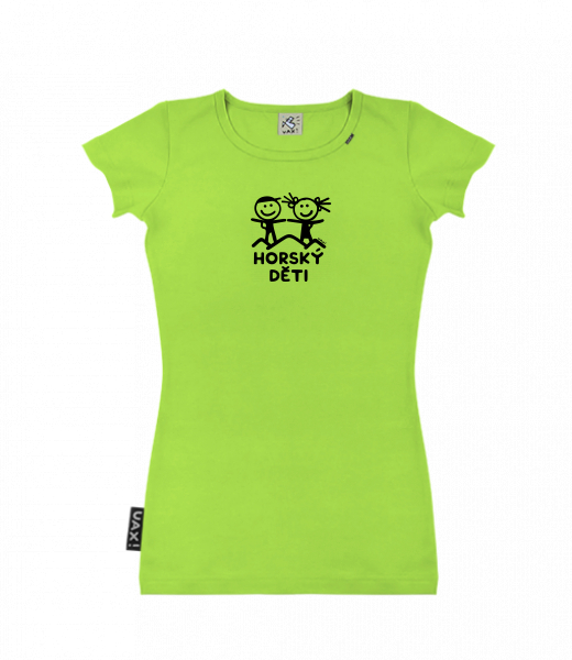 Dámské tričko s potiskem SKRATDA UAX! for woman with design 1300 HORSKÝ DĚTI in color PARROT GREEN