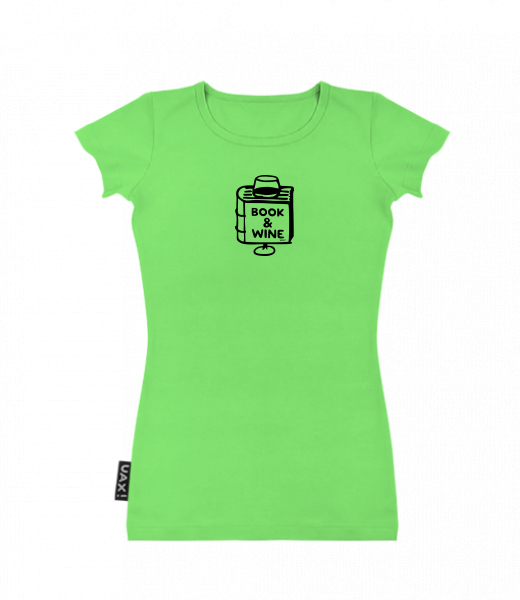 Dámské tričko s potiskem SKRATDA UAX! for woman with design 1322 BOOK AND WINE in color APPLE