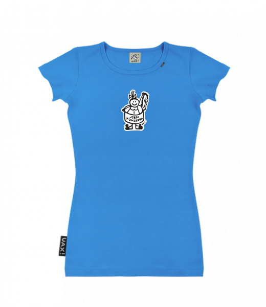 Dámské tričko s potiskem SKRATDA UAX! for woman with design 1353 JSEM KONZERVA WOMEN in color CAPRI BLUE