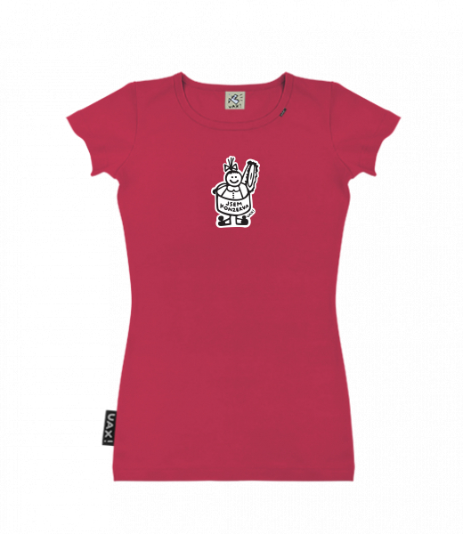 Dámské tričko s potiskem SKRATDA UAX! for woman with design 1353 JSEM KONZERVA WOMEN in color CHILLY PEPPER RED