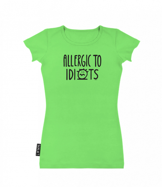 Dámské tričko s potiskem SKRATDA UAX! for woman with design 1354 ALLERGIC TO IDIOTS in color APPLE