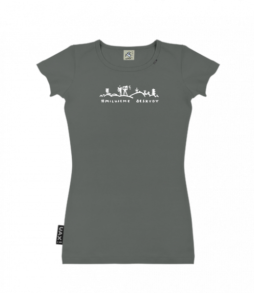 We make sustainable UAX clothing! - hand sewn in the Czech Republic uaxWomen uaxAll productsT-shirtsSKRATDA T-SHIRTSdesign 1355 - MILUJEME BESKYDY 1DARK GRAY