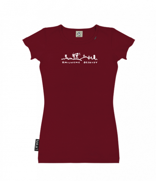 We make sustainable UAX clothing! - hand sewn in the Czech Republic uaxWomen uaxAll productsT-shirtsSKRATDA T-SHIRTSdesign 1355 - MILUJEME BESKYDY 1DARK RED