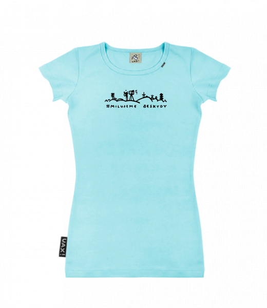 Dámské tričko s potiskem SKRATDA UAX! for woman with design 1355 MILUJEME BESKYDY 1 in color PASTEL BLUE