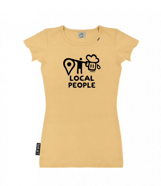 Dámské tričko s potiskem SKRATDA UAX! for woman with design 1360 LOCAL PEOPLE BIG in color MUSTARD