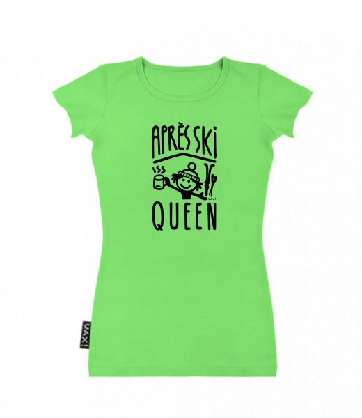 Dámské tričko s potiskem SKRATDA UAX! for woman with design 1371 APRÉS SKI QUEEN in color APPLE