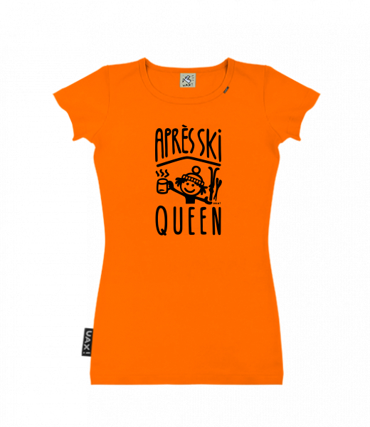 Dámské tričko s potiskem SKRATDA UAX! for woman with design 1371 APRÉS SKI QUEEN in color SIGNAL ORANGE
