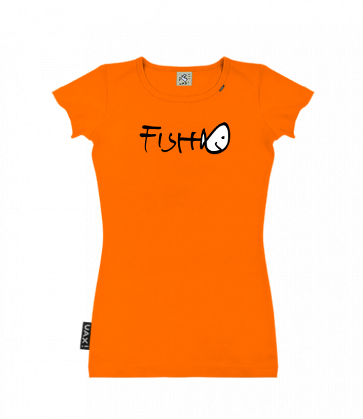 Dámské tričko s potiskem SKRATDA UAX! for woman with design 357 FISH in color SIGNAL ORANGE
