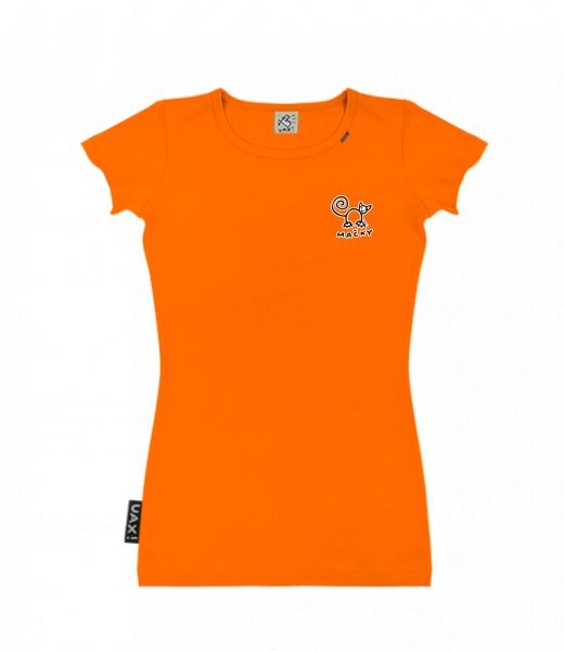 Dámské tričko s potiskem SKRATDA UAX! for woman with design 526 MACKY in color SIGNAL ORANGE