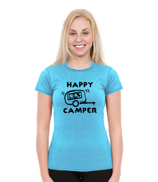 Women's t-shirts BALI WOMEN for woman with design 1116 HAPPY CAMPER in color BLUE ATOLL