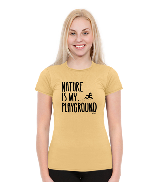 Women's t-shirts BALI WOMEN for woman with design 1160 NATURE IS MY PLAYGROUND in color MUSTARD