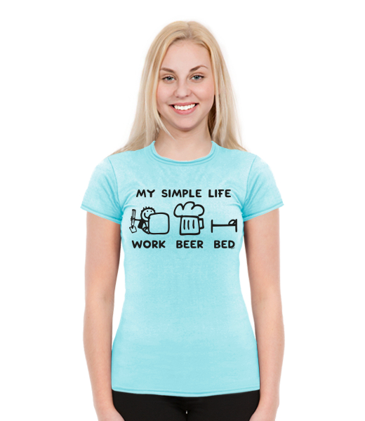 We make sustainable UAX clothing! - hand sewn in the Czech Republic uaxWomen uaxAll productsT-shirtsT-SHIRT BALI WOMENdesign 1211 - MY SIMPLE LIFE WORK BEER BEDPASTEL BLUE