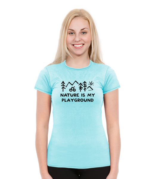 Women's t-shirts BALI WOMEN for woman with design 1223 NATURE IS MY PLAYGROUND in color PASTEL BLUE