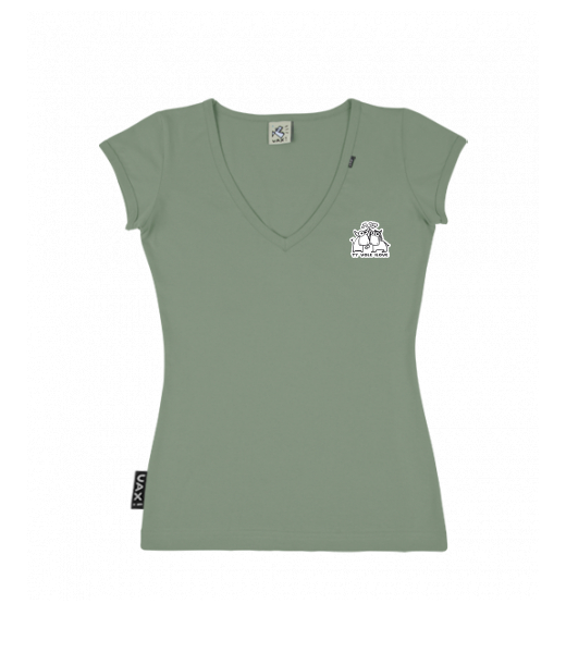 T-SHIRT V-NECK for woman with design 1089 TY VOLE I LOVE in color OLIVA