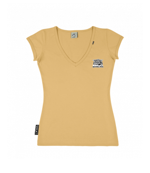T-SHIRT V-NECK for woman with design 1104 BOWLING 2 in color MUSTARD
