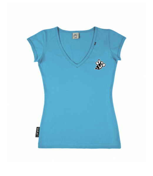 T-SHIRT V-NECK for woman with design 1114 BEE in color BLUE ATOLL