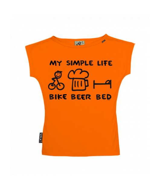 We make sustainable UAX clothing! - hand sewn in the Czech Republic uaxWomen uaxAll productsT-shirtsWOMEN'S BOAT NECK T-SHIRTdesign 1056 - BIKE BEER BEDSIGNAL ORANGE