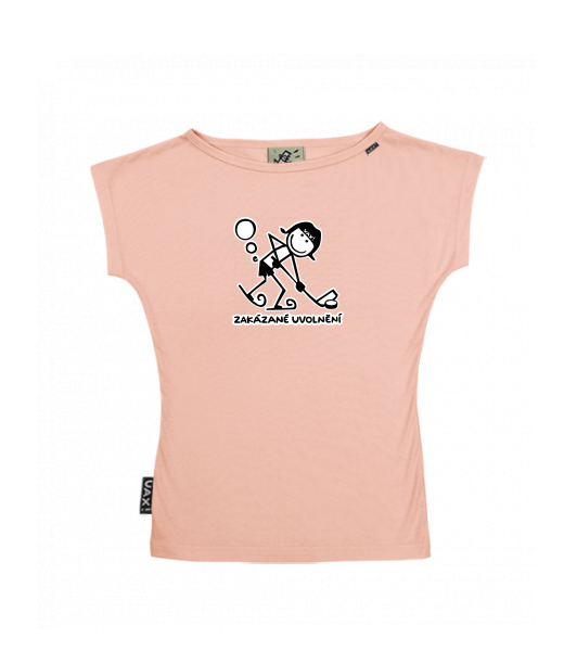 We make sustainable UAX clothing! - hand sewn in the Czech Republic uaxWomen uaxAll productsT-shirtsWOMEN'S BOAT NECK T-SHIRTdesign 1059 - ZAKÁZANÉ UVOLNĚNÍPEACH