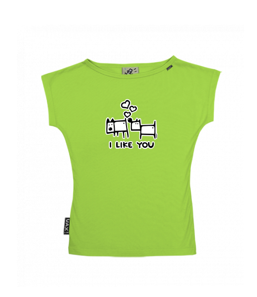 WOMEN'S BOAT NECK T-SHIRT for woman with design 1066 I LIKE YOU in color PARROT GREEN