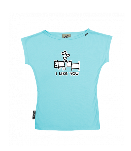 We make sustainable UAX clothing! - hand sewn in the Czech Republic uaxWomen uaxAll productsT-shirtsWOMEN'S BOAT NECK T-SHIRTdesign 1066 - I LIKE YOUPASTEL BLUE