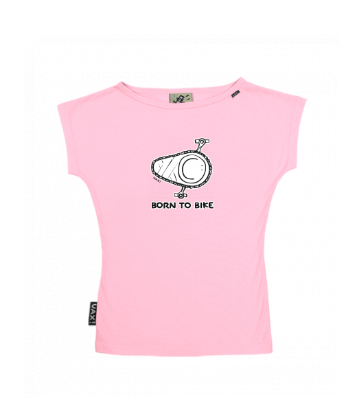 We make sustainable UAX clothing! - hand sewn in the Czech Republic uaxWomen uaxAll productsT-shirtsWOMEN'S BOAT NECK T-SHIRTdesign 1074 - BORN TO BIKEBABY PINK