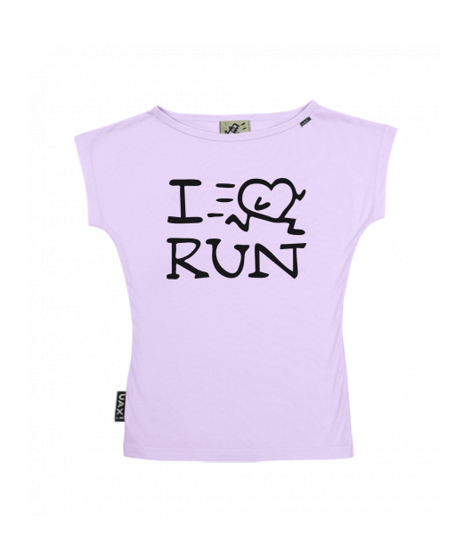 WOMEN'S BOAT NECK T-SHIRT for woman with design 1088 I LOVE RUN in color LAVENDER