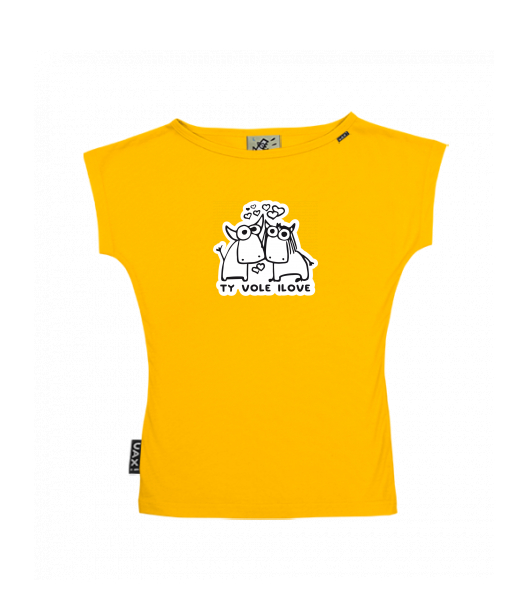 We make sustainable UAX clothing! - hand sewn in the Czech Republic uaxWomen uaxAll productsT-shirtsWOMEN'S BOAT NECK T-SHIRTdesign 1089 - TY VOLE I LOVEGOLDEN CREAM