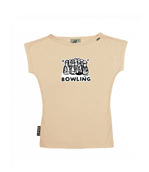 We make sustainable UAX clothing! - hand sewn in the Czech Republic uaxWomen uaxAll productsT-shirtsWOMEN'S BOAT NECK T-SHIRTdesign 1104 - BOWLING 2CARAMEL
