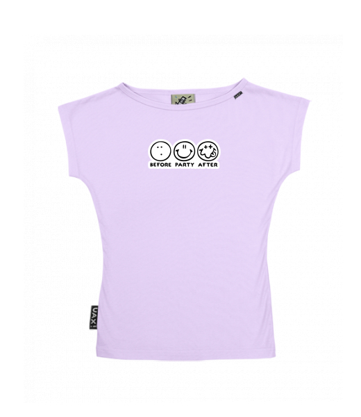 We make sustainable UAX clothing! - hand sewn in the Czech Republic uaxWomen uaxAll productsT-shirtsWOMEN'S BOAT NECK T-SHIRTdesign 1120 - BEFORE PARTY AFTERLAVENDER
