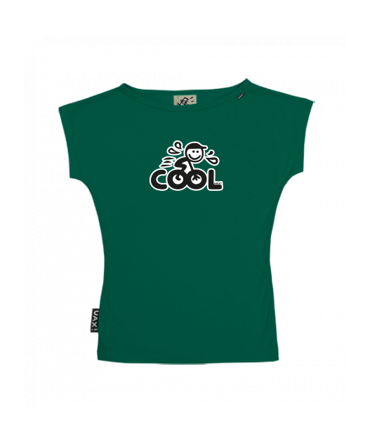 WOMEN'S BOAT NECK T-SHIRT for woman with design 1169 COOL CYCLIST in color UNIVERSITY GREEN