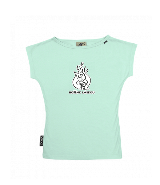 WOMEN'S BOAT NECK T-SHIRT for woman with design 1208 HOŘÍME LÁSKOU in color MINT