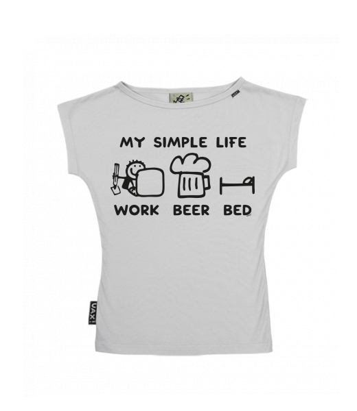 We make sustainable UAX clothing! - hand sewn in the Czech Republic uaxWomen uaxAll productsT-shirtsWOMEN'S BOAT NECK T-SHIRTdesign 1211 - MY SIMPLE LIFE WORK BEER BEDCEMENT