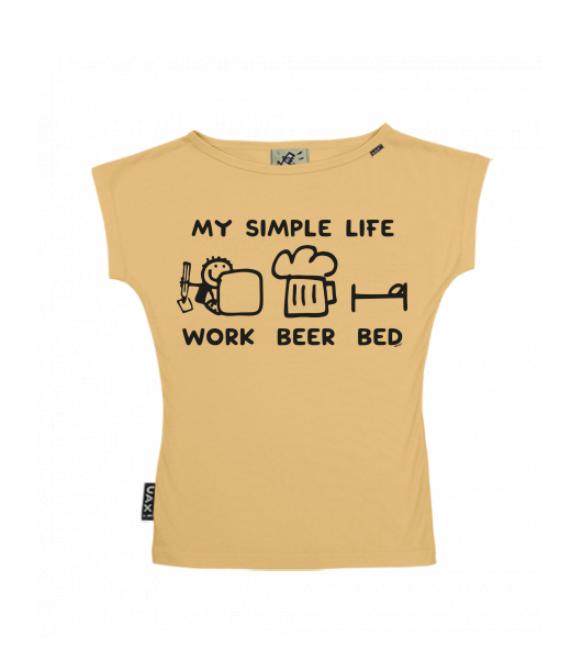 We make sustainable UAX clothing! - hand sewn in the Czech Republic uaxWomen uaxAll productsT-shirtsWOMEN'S BOAT NECK T-SHIRTdesign 1211 - MY SIMPLE LIFE WORK BEER BEDMUSTARD